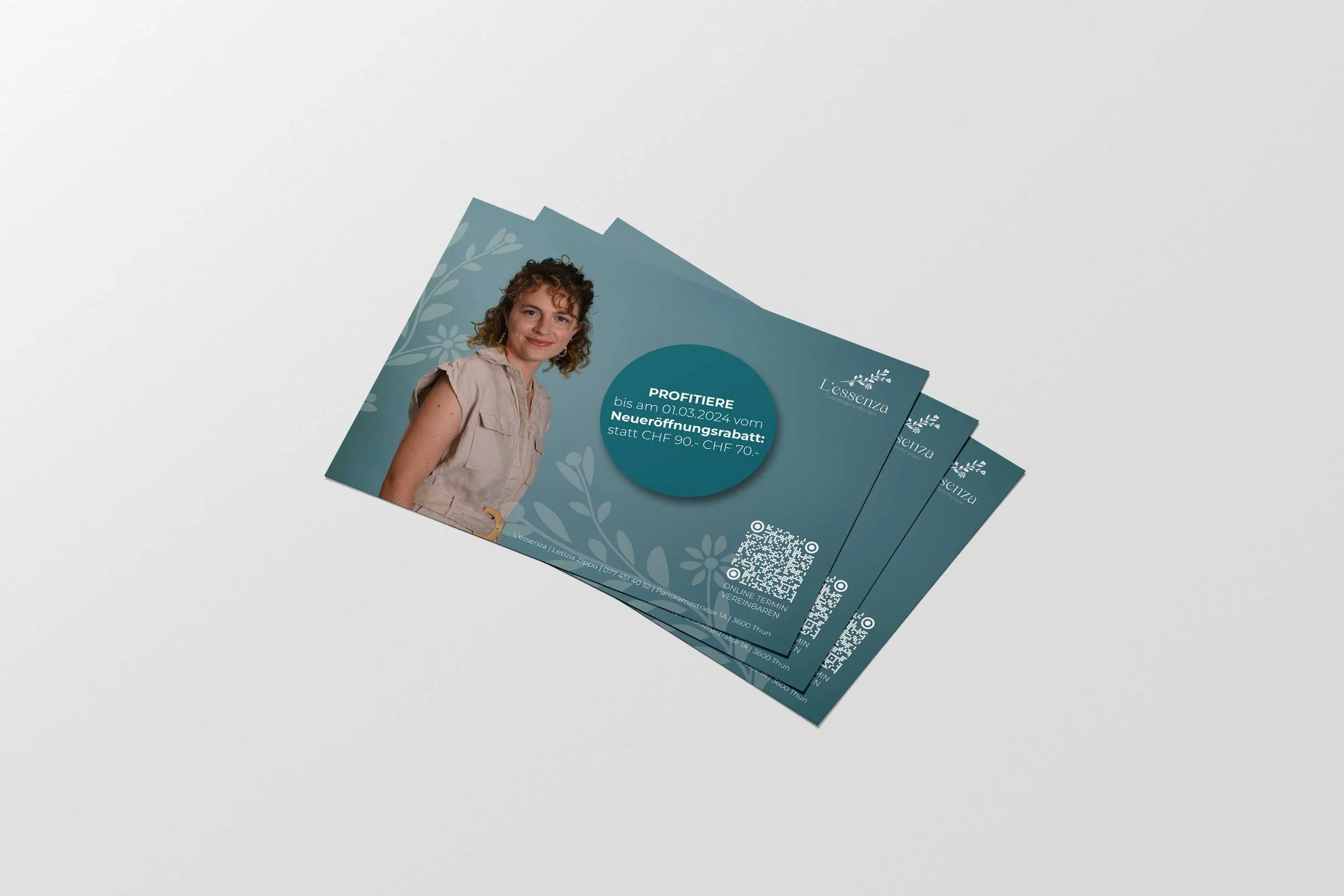 Entdecken Sie das vollständige Markenerlebnis mit unserer Fussreflexzonentherapeutin! Unser einzigartiges Logo repräsentiert das harmonische Gleichgewicht von Körper und Geist. Tauchen Sie ein in die Welt der Entspannung mit unseren individuell gestalteten Terminkarten, Postkarten und Gutscheinen. Ihre persönliche Webseite wurde mit Sorgfalt entwickelt, um Ihnen einen einladenden Raum für Wellness zu bieten. Vertrauen Sie unserer Expertise für ein ganzheitliches Branding, das Ihre Praxis authentisch widerspiegelt.